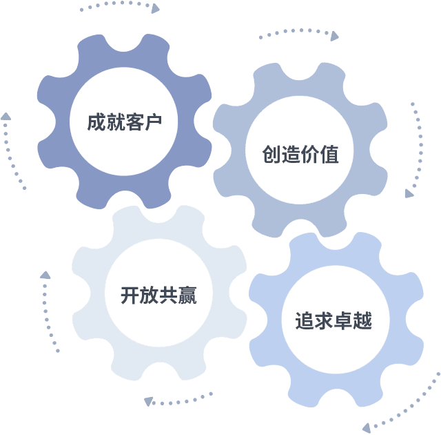 成就客户是一切决策的出发点,,,,创造价值是衡量所有工作的标准,,,追求卓越是耀世娱乐做事做人的态度,,,,开放共赢是耀世娱乐的格局也是最终的结果。。。。价值观的齿轮环环相扣,,推动着组织里的每个人不断向前。。